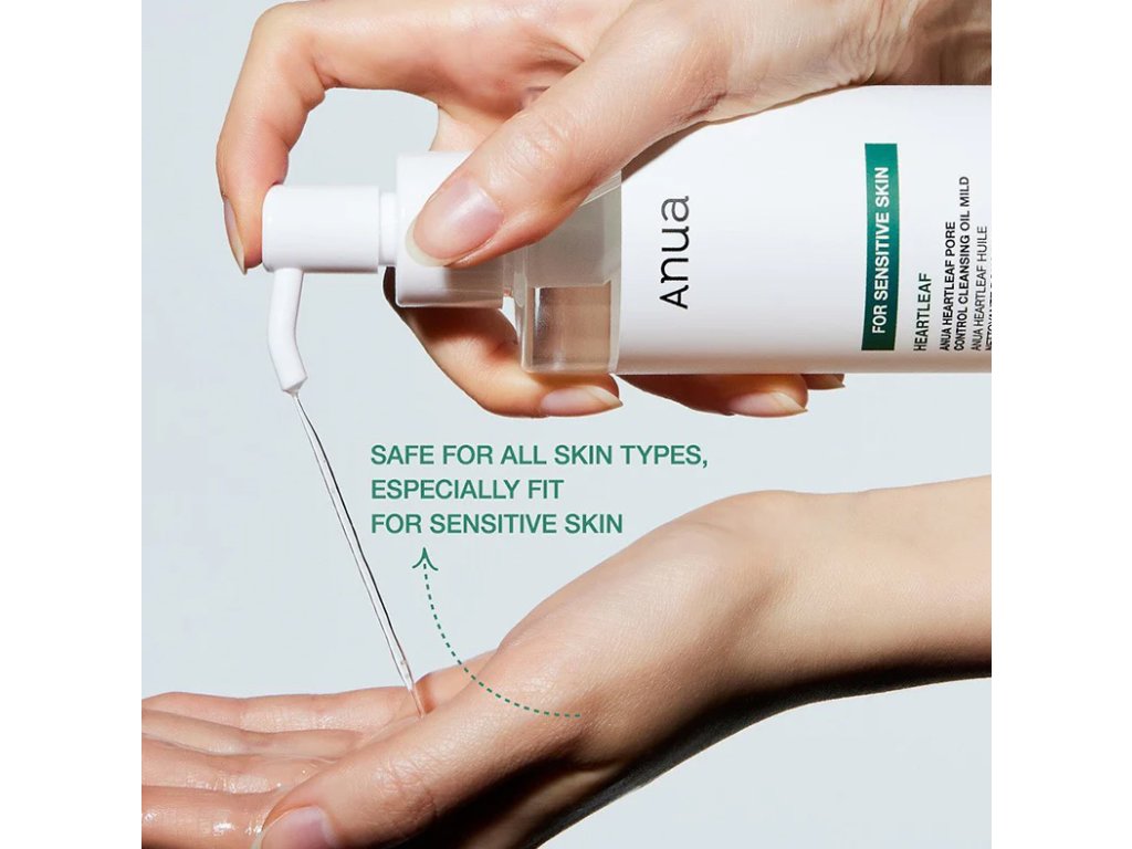 Čisticí olej Anua Heartleaf Pore Control Mild, doporučený pro všechny typy pleti, zajišťuje osvěžující čištění, které je ideální pro udržení zdravé a vyvážené pleti.