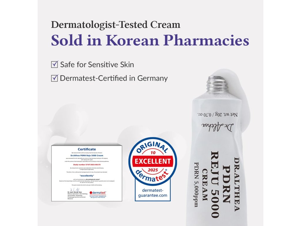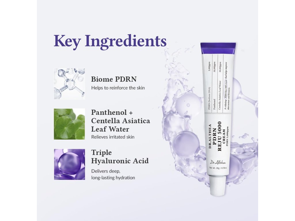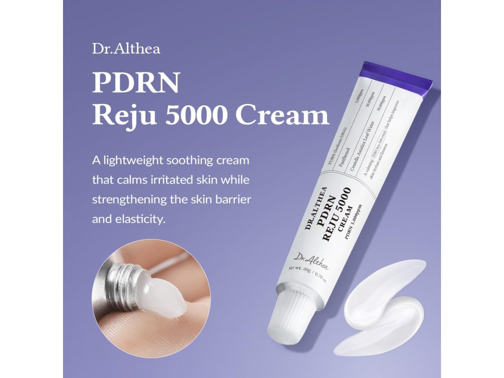 Dr. Althea PDRN Reju 5000 Cream je zklidňující a zpevňující krém s PDRN a probiotickými složkami, který pomáhá zlepšit texturu pleti, minimalizovat podráždění a dodat dlouhodobou hydrataci. Díky šetrnému složení je vhodný pro všechny typy pleti včetně citlivé.