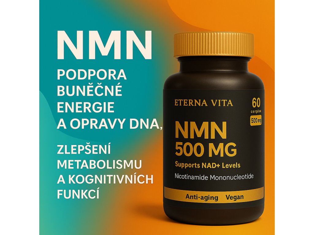 Eterna Vita NMN 500 mg je doplněk stravy obsahující nikotinamid mononukleotid (NMN), který podporuje buněčnou energii, přirozenou tvorbu NAD+, opravu DNA a celkovou vitalitu organismu.