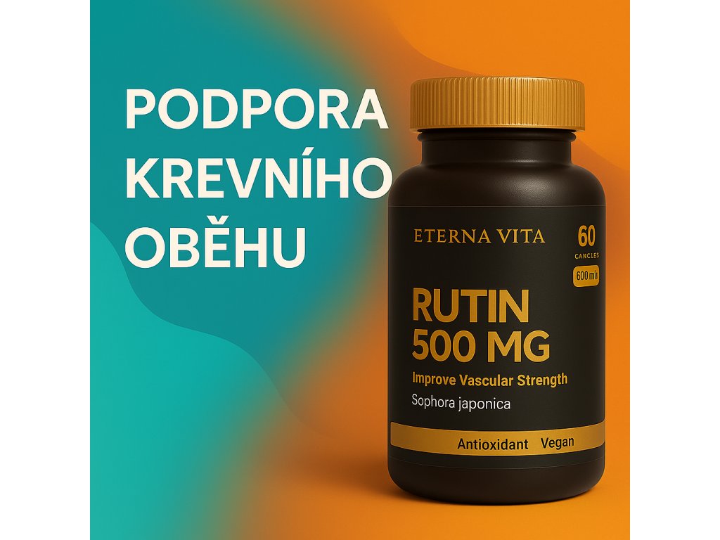 Rutin přispívá k posílení cévních stěn, podpoře krevního oběhu, regulaci cholesterolu a může napomáhat při problémech s křečovými žilami, otoky či záněty.