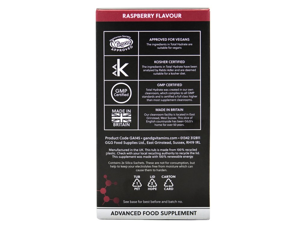 G&G Vitamins - Total Hydrate Raspberry – Elektrolytový nápoj v prášku – 150 g