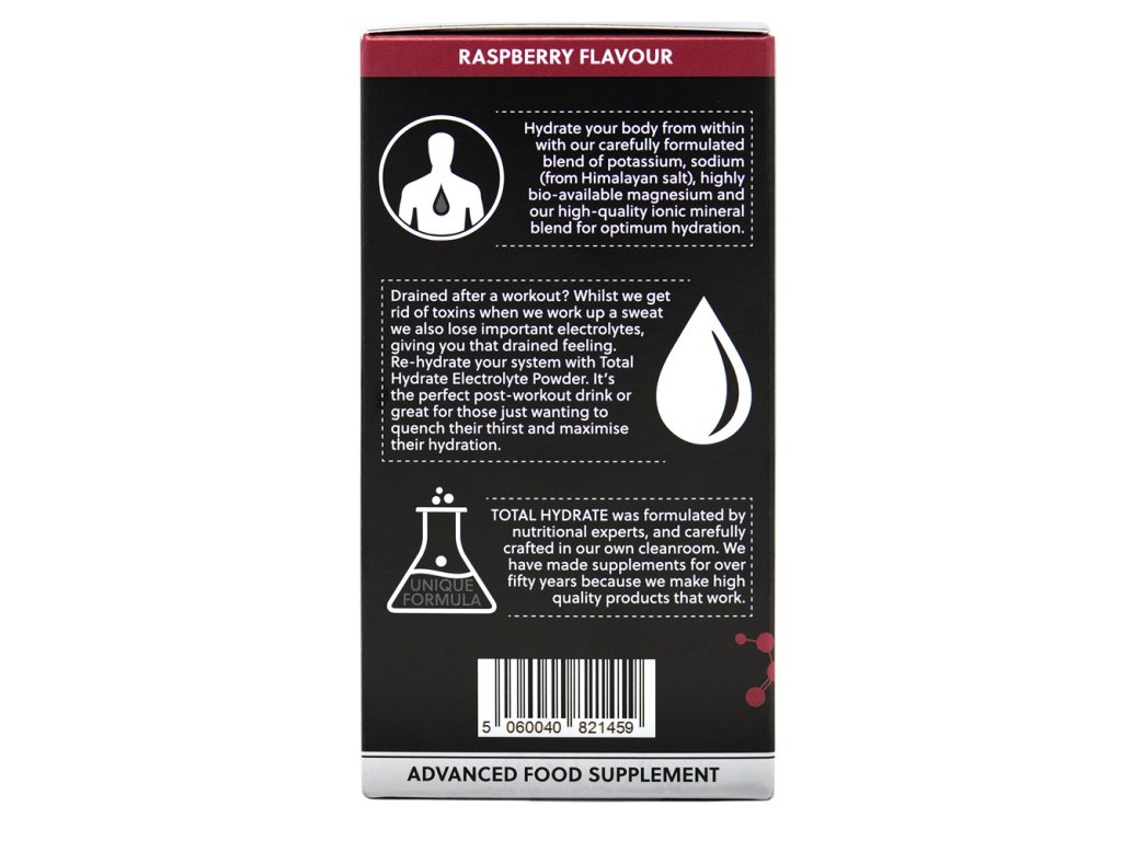Total Hydrate pomáhá doplnit ztracené minerály a je ideální jako nápoj po tréninku, při zvýšené fyzické aktivitě nebo kdykoli během dne pro podporu hydratace.