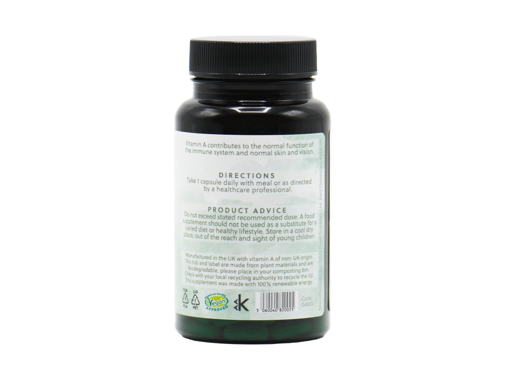 Náš vitamin A poskytuje 5 000 iu (1,5 mg) vysoce kvalitního vitaminu A retinolu v kapsli z rostlinné celulózy.