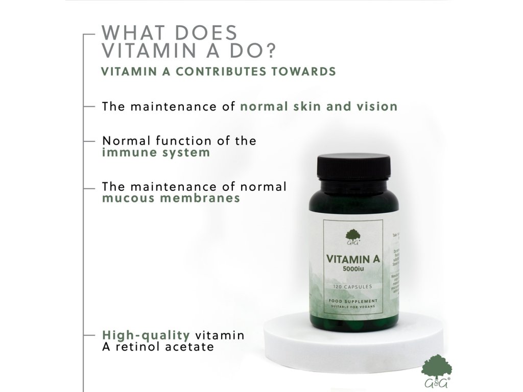 Vitamin A přispívá ke zdravé výživě mnoha způsoby. To zahrnuje udržení normální kůže a zraku, normální funkci imunitního systému a udržení normálních sliznic.