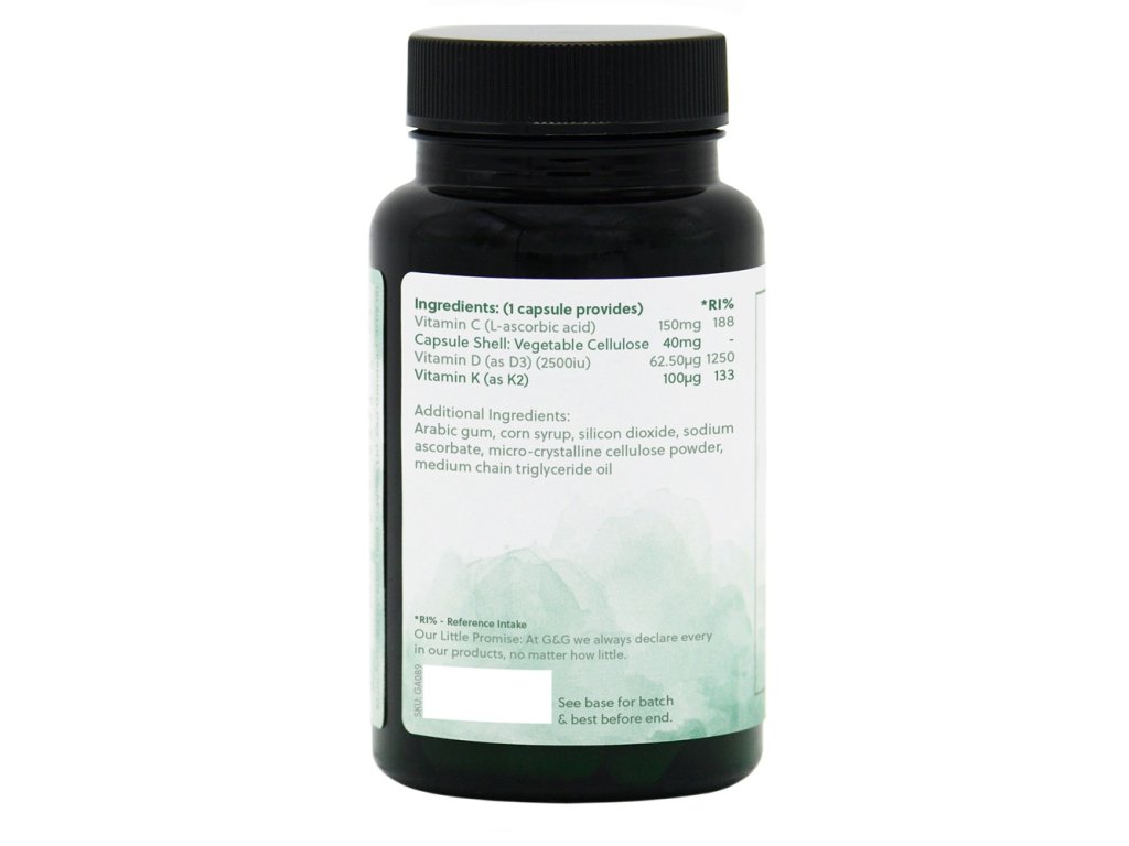 Komplexní doplněk stravy kombinující vitamín D3 (2500 IU) z přírodního zdroje s vitamínem K2 (MK-7) a vitamínem C. Tato promyšlená formule spojuje tři klíčové vitamíny, které v těle působí synergicky – zejména pro podporu kostí a imunitního systému.