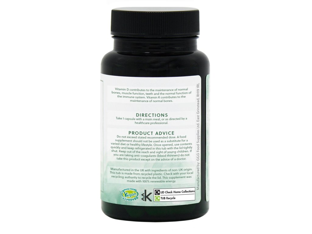 Přírodní veganský vitamín D z lišejníku • S vitamínem K2 (MK-7) a C • 3měsíční balení • Vyrobeno ve Velké Británii