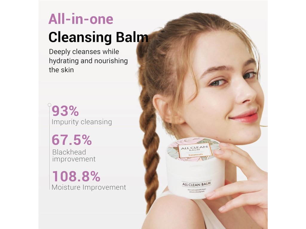 Heimish All Clean Balm 120 ml je 1-krokový odličovací balzám typu „oil-to-milk“, který odstraní i voděodolný make-up, hydratuje a je vhodný pro citlivou pleť.