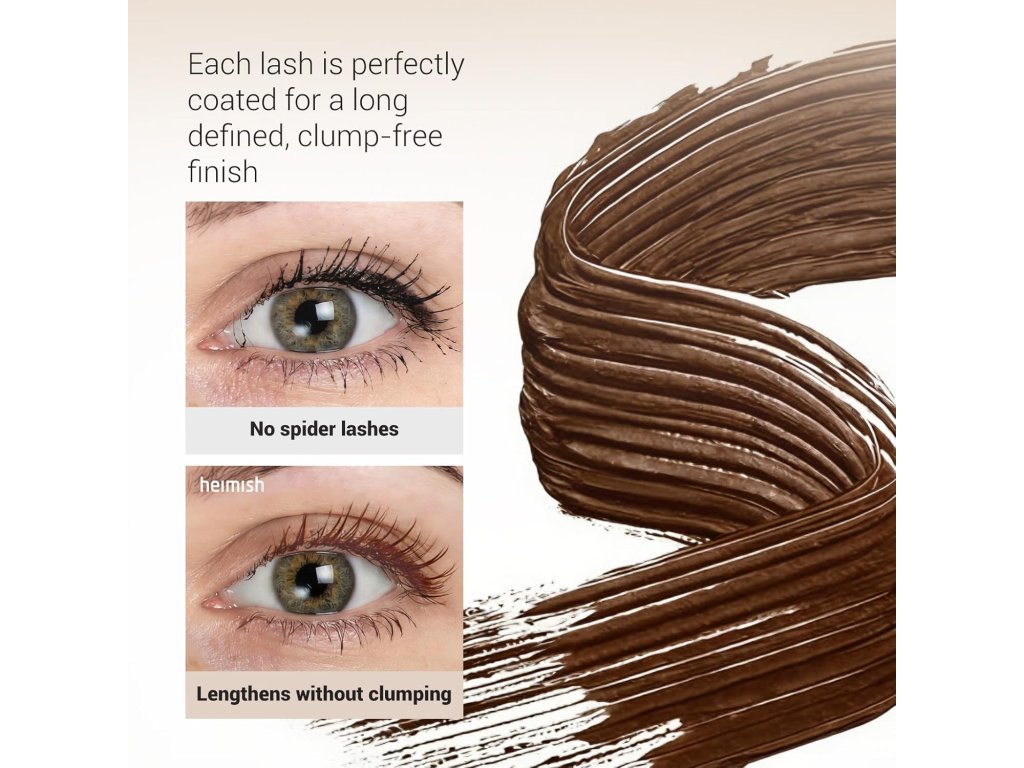 Heimish Dailism Smudge Stop Mascara Volume Brown 9 g je hnědá tubing řasenka navržená pro výraznější, oddělené a opticky delší řasy bez rozmazání. Pomáhá vytvořit plnější a definovanější pohled, vydrží po celý den a zároveň se snadno odstraňuje teplou vodou.