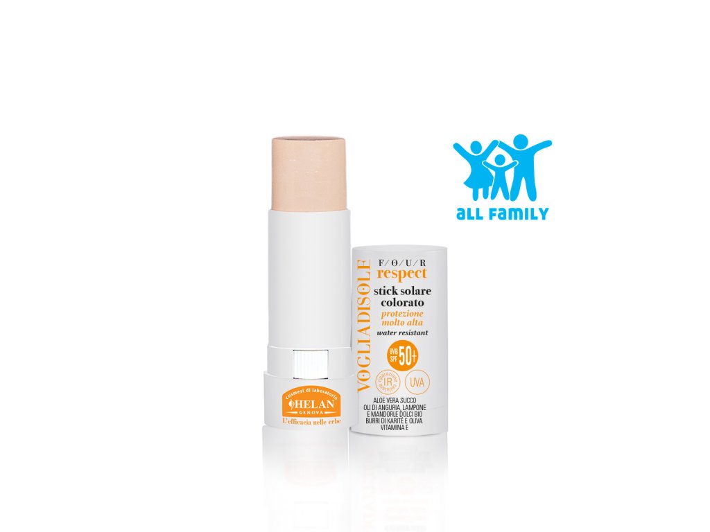 Tónovaný ochranný stick s velmi vysokou ochranou SPF50+, ideální pro citlivá místa obličeje vystavená slunci.
