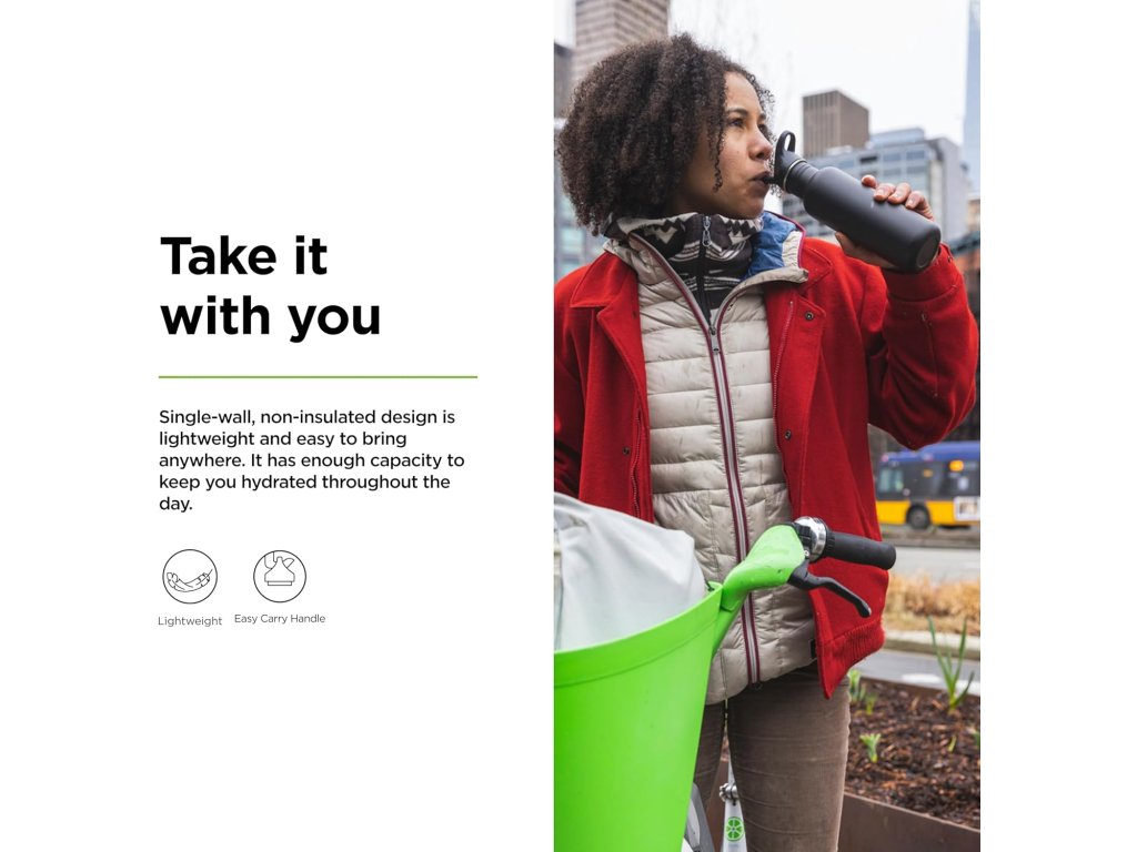 Praktické sportovní víčko Flip Seal umožňuje snadné pití bez rozlití. Elegantní a štíhlý design se pohodlně drží v ruce a vejde se téměř do každého držáku na nápoje či kapsy batohu. Láhev je navíc zcela bez BPA, nezanechává žádnou kovovou či plastovou pachuť a snadno se čistí.
