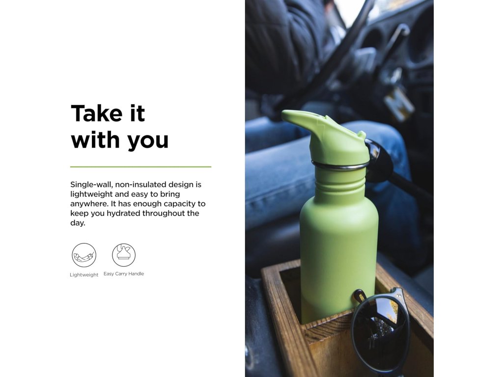 Lehká, odolná a navržená pro každodenní použití. Tato jednoplášťová láhev z 90 % recyklované nerezové oceli je skvělým společníkem na cestách, při sportu i v kanceláři.