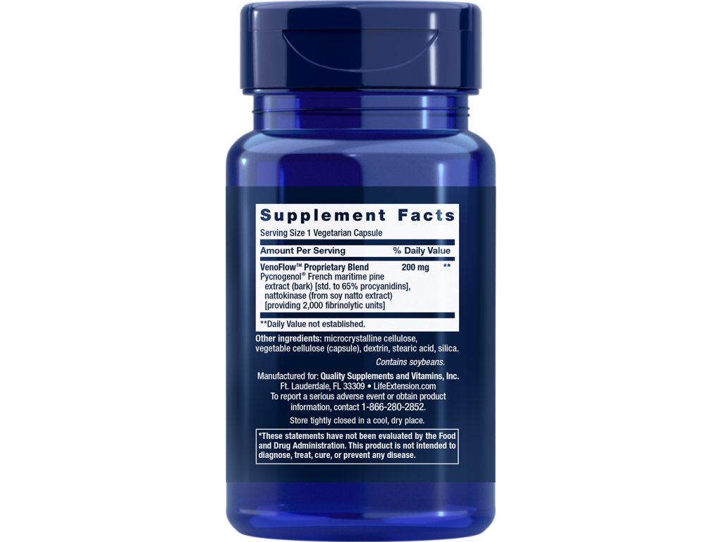 Receptura VenoFlow™ kombinuje enzym nattokinázu s extraktem z kůry francouzské borovice přímořské Pycnogenol®, který podporuje zdraví oběhového systému a cév a krevního oběhu a dlouhověkost.