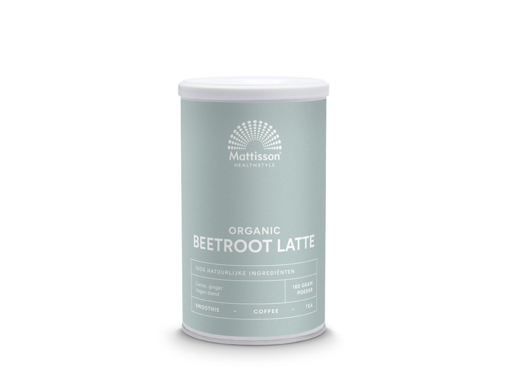 Mattisson BIO Latte z červené řepy - Zázvorové kakao 160 g. Základem tohoto latté je prášek z červené řepy a kakaa. Latte má příjemnou jemnou chuť a je obohaceno o zázvor, hřebíček a anýz.