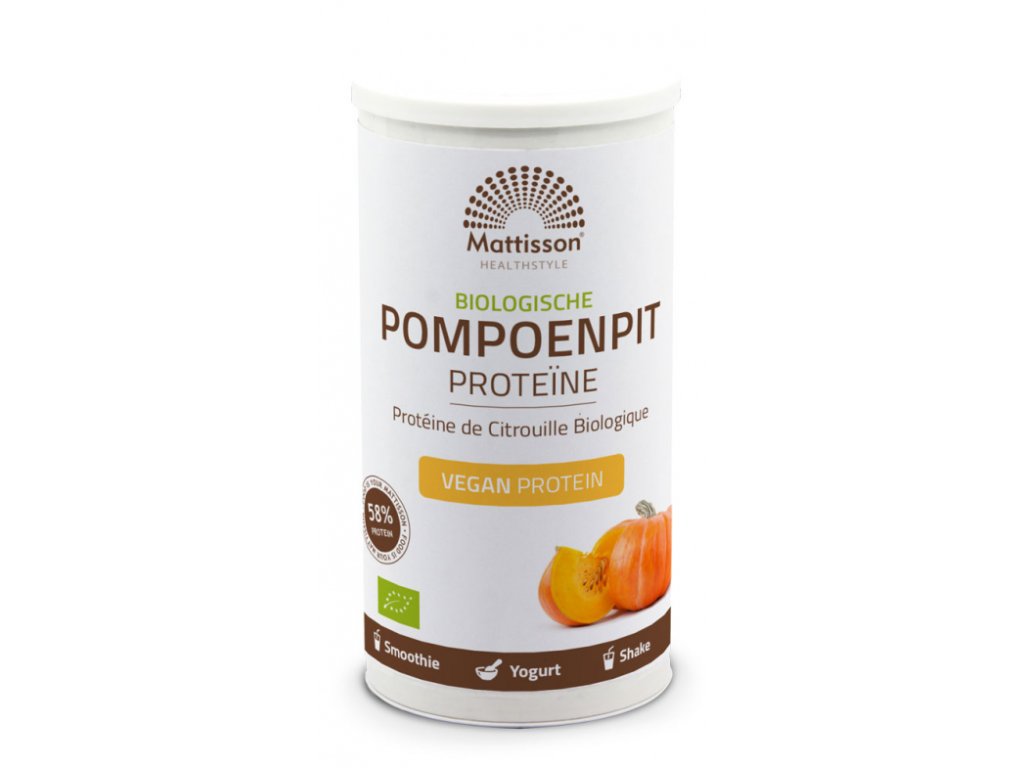Mattisson protein z dýňových semen je zdrojem bílkovin a obsahuje 58 g bílkovin na 100 g výrobku. Bílkoviny jsou pro naše tělo nezbytné, jsou stavebními kameny našich buněk a tkání. Bílkoviny přispívají k udržení a růstu svalové hmoty a k udržení normálního stavu kostí.