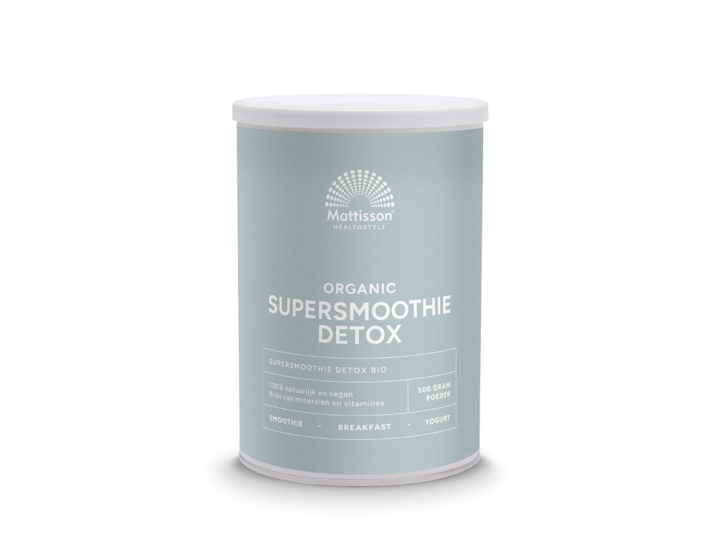 Mattisson BIO Supersmoothie Detox - 500 g. Toto BIO SuperSmoothie Detox se skládá ze superpotravin Chlorella, Spirulina, Pšeničná tráva, Ječmenná tráva a Lucuma. Prášek lze přidat do smoothie, mléka, vody nebo jogurtu a je ideální jako snídaně, oběd nebo svačina.
