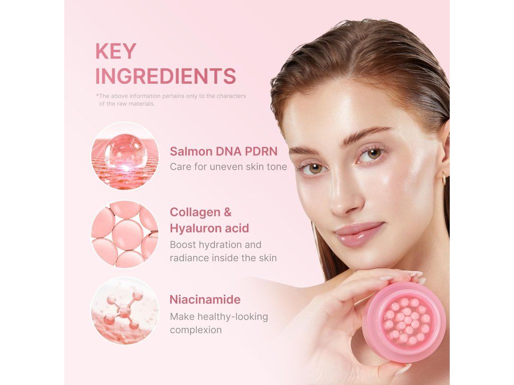 Růžové kapsle pomáhají uchovat účinnost prémiového PDRN a dalších aktivních složek až do okamžiku nanesení na pleť.
