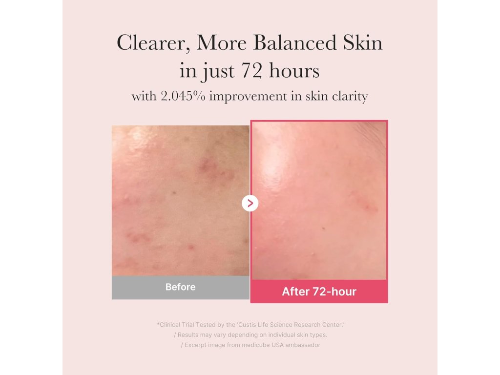 Nejsilnější koncentrace TXA od značky medicube pro intenzivní péči o skvrny po akné a zlepšení celkového vzhledu pleti. Informace se vztahují k vlastnostem surovin. Maximální koncentrace TXA podle interních standardů péče o pleť.