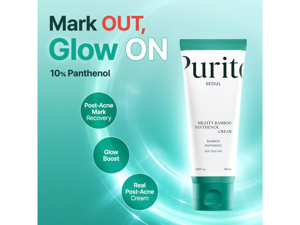 PURITO SEOUL Mighty Bamboo Panthenol Cream je hydratační a zklidňující krém určený pro pleť, která je suchá, podrážděná, oslabená nebo se zotavuje po akné. Pomáhá posílit kožní bariéru, podpořit komfort pleti a přispět k hladšímu a sjednocenějšímu vzhledu.