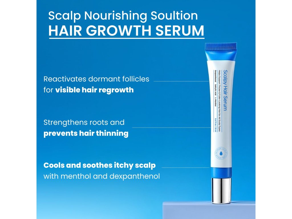 Seapuri Scalpy Hair Serum je bezoplachové sérum určené k aplikaci přímo na pokožku hlavy. Pomáhá podpořit růst vlasů, posílit vlasové kořínky a přispět k omezení padání vlasů. Je vhodné pro ženy i muže a pro všechny typy vlasů i vlasové pokožky.