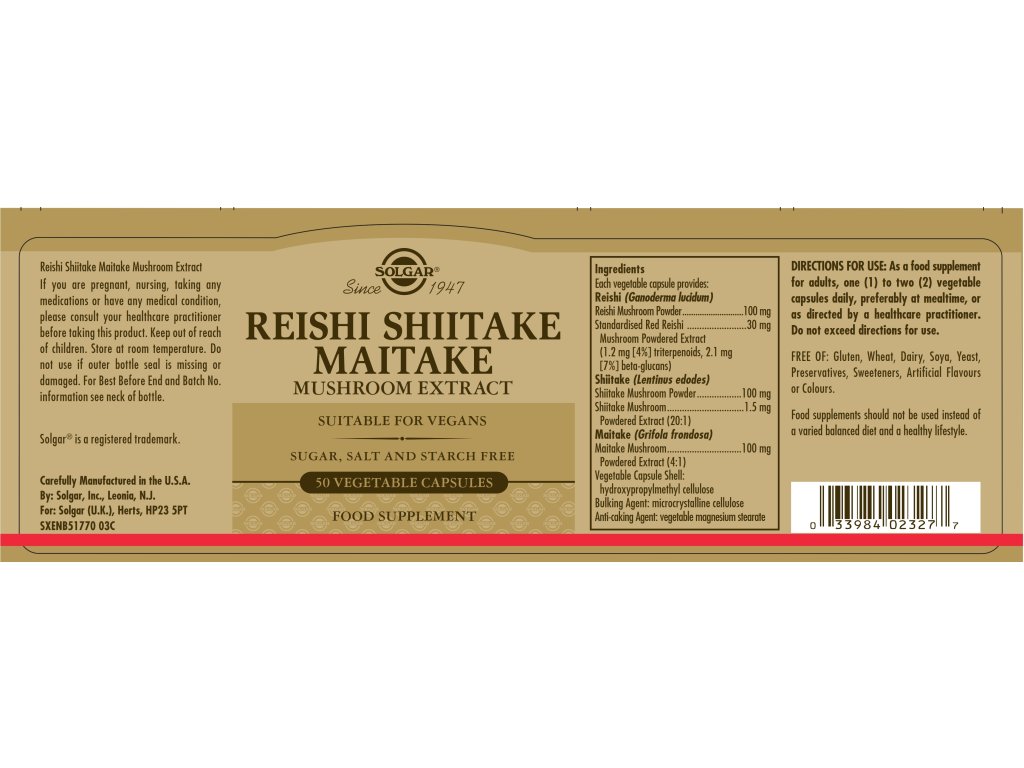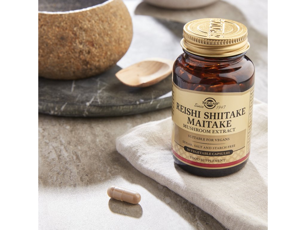 Solgar Extrakt z Shiitake, Reishi a Maitake 50 kapslí. Extrakt z hub Shiitake, Reishi a Maitake. Doplněk stravy.
