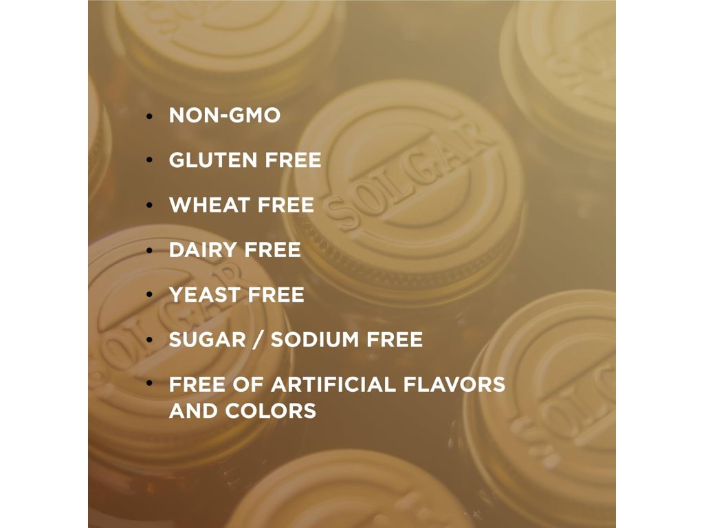 Solgar® je výsledkem 75 let úsilí o kvalitu, zdraví a pohodu. Naše poslání po celá desetiletí zůstávalo stejné: vytvářet ty nejkvalitnější doplňky výživy v malých sériích, které bylo možné uskutečnit díky neúnavnému výzkumu, za použití pouze těch nejlepších surovin. Pokud jde o kvalitu, Solgar® je zlatý standard.
