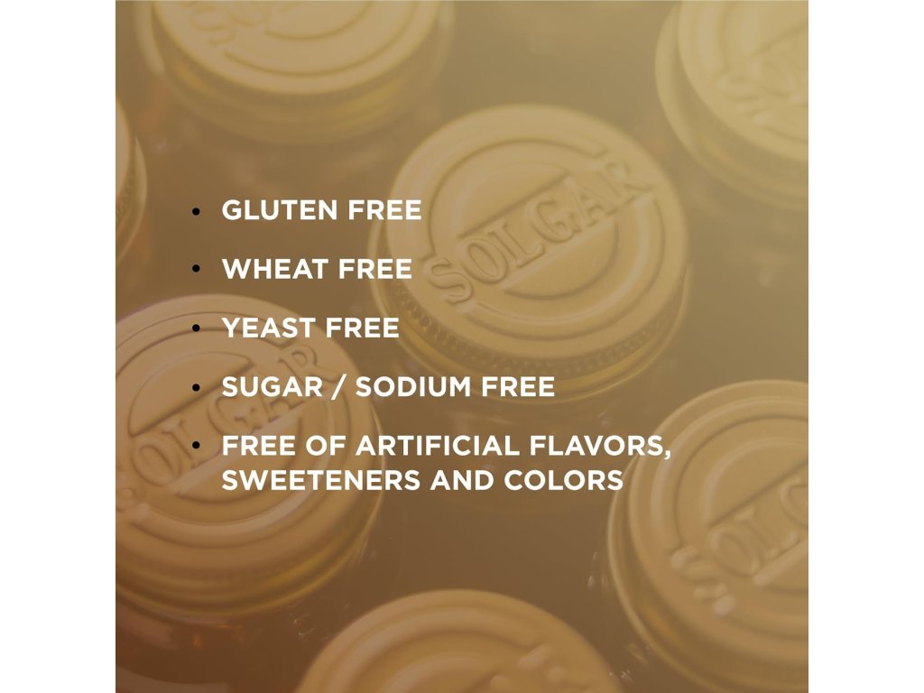 Solgar® je výsledkem 75 let úsilí o kvalitu, zdraví a pohodu. Naše poslání po celá desetiletí zůstávalo stejné: vytvářet ty nejkvalitnější doplňky výživy v malých sériích, které bylo možné uskutečnit díky neúnavnému výzkumu, za použití pouze těch nejlepších surovin. Pokud jde o kvalitu, Solgar® je zlatý standard.