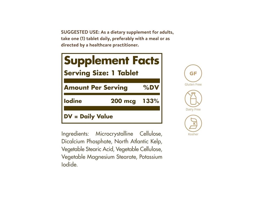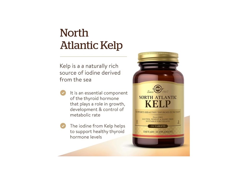Je vynikajícím zdrojem jódu, který je důležitý pro zdravou funkci štítné žlázy. Každá tableta tohoto severoatlantského kelpu dodává 200 μg jódu