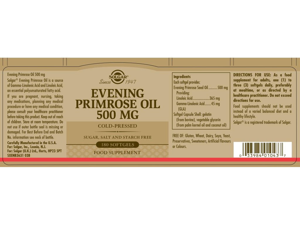 Zvýhodněné velké balení 180 kapslí. Solgar Pupalkový olej 500mg 180 kapslí. Za studeny lisovaný 10% GLA. Pěstováno bez herbicidů a pesticidů.