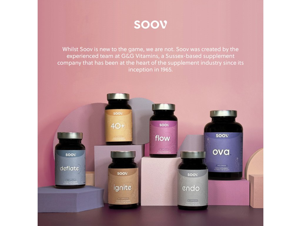 Ačkoliv je značka Soov na trhu nová, lidé, kteří ji vytvořili, mají desítky let zkušeností. Soov je projekt týmu G&G Vitamins, britské rodinné firmy se sídlem v Sussexu, která je součástí doplňkového průmyslu už od roku 1965.