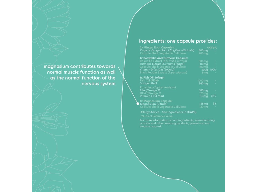 Magnesium pro normální funkci svalů, zázvor a omega-3 pro klidnější dny.