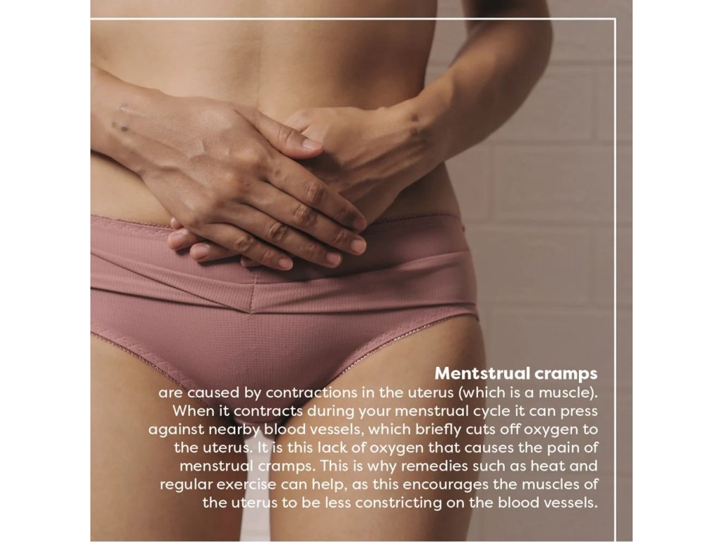 Menstruační křeče jsou způsobeny kontrakcemi dělohy – sval, který při cyklu stahuje a může omezit přísun kyslíku. Výsledkem je bolest. Hořčík pomáhá uvolnit svaly, zatímco zázvor, kurkuma a boswellie přispívají ke zmírnění nepohodlí.
