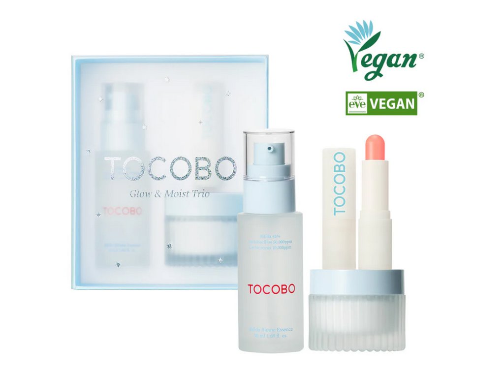 Vyzkoušejte komplexní péči sady Tocobo Glow & amp; Moist Trio Set pro zářivou a hydratovanou pleť a rty.